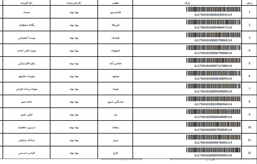 - شماره مرسوله دوازده آبان