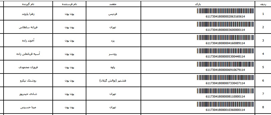 - شماره مرسوله هشت آبان