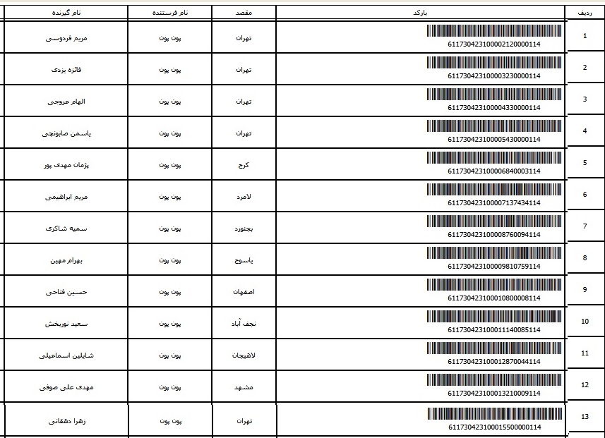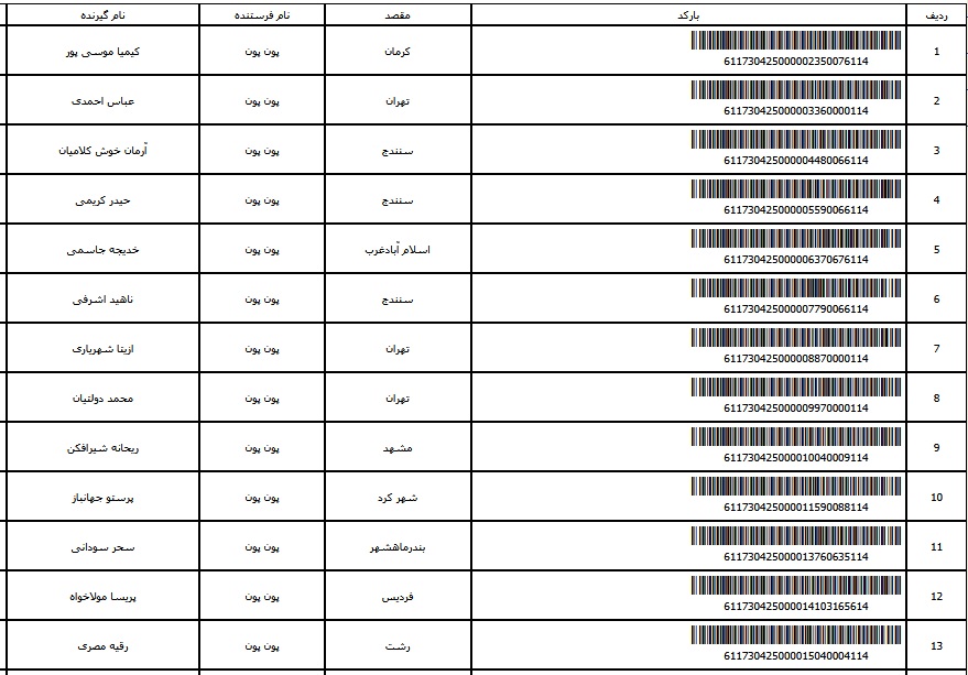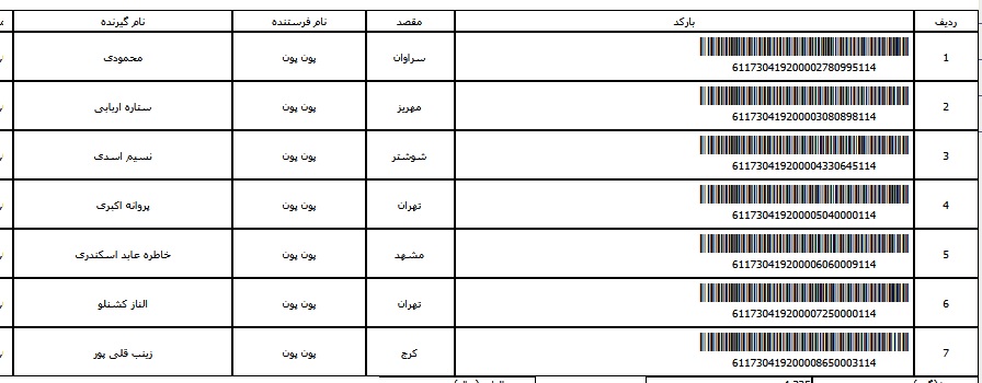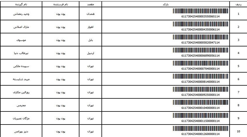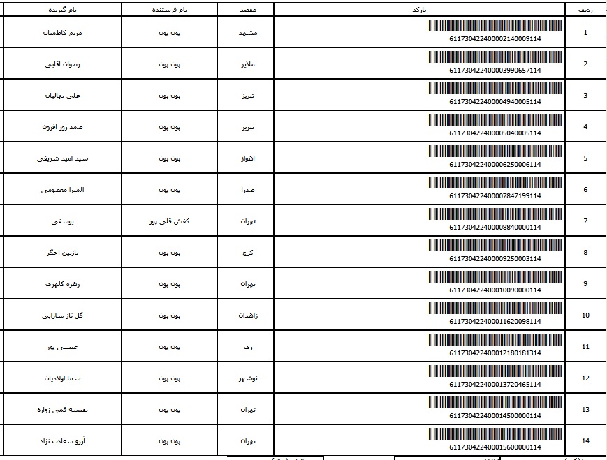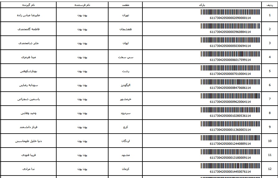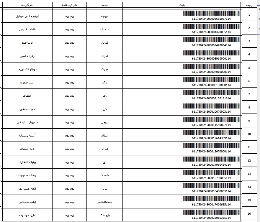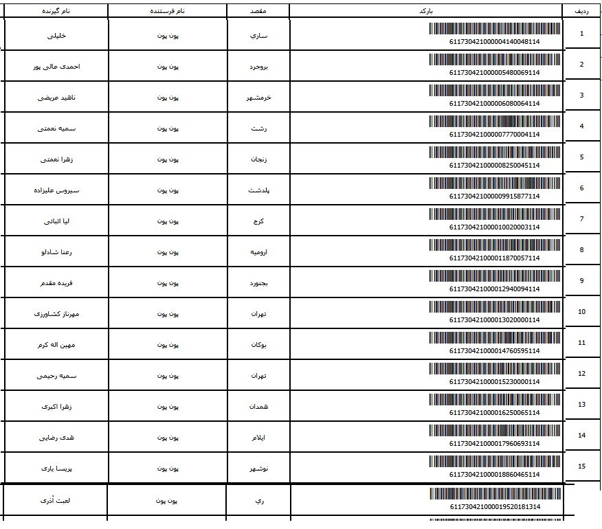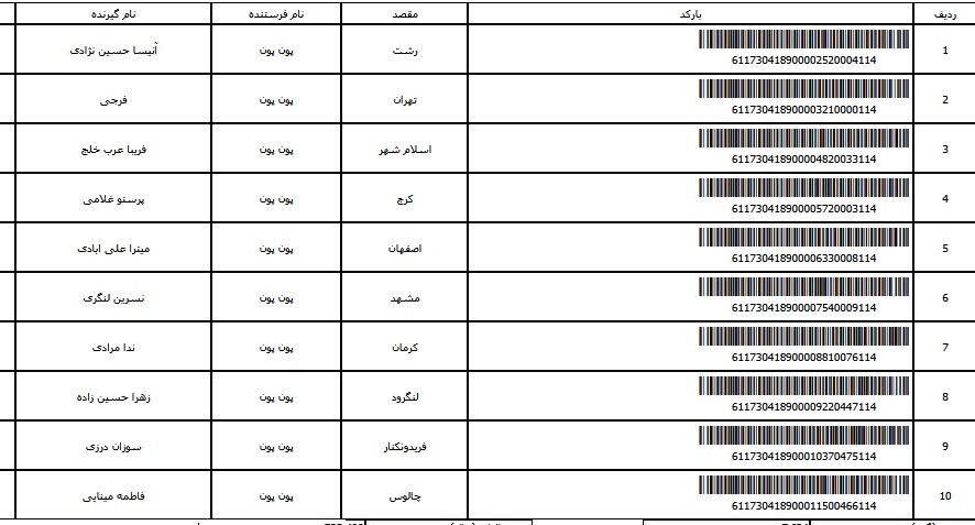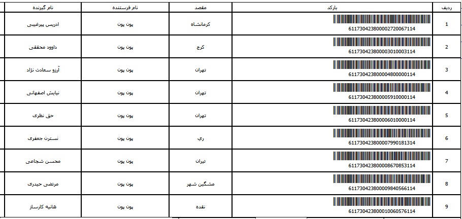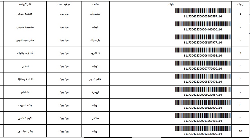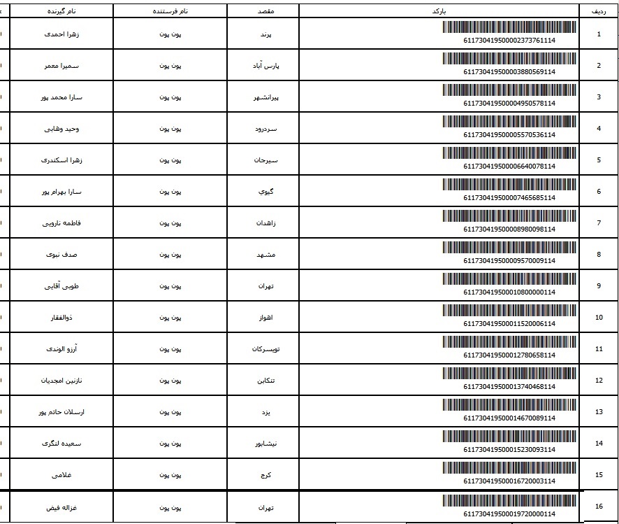 - شماره مرسوله یک آبان