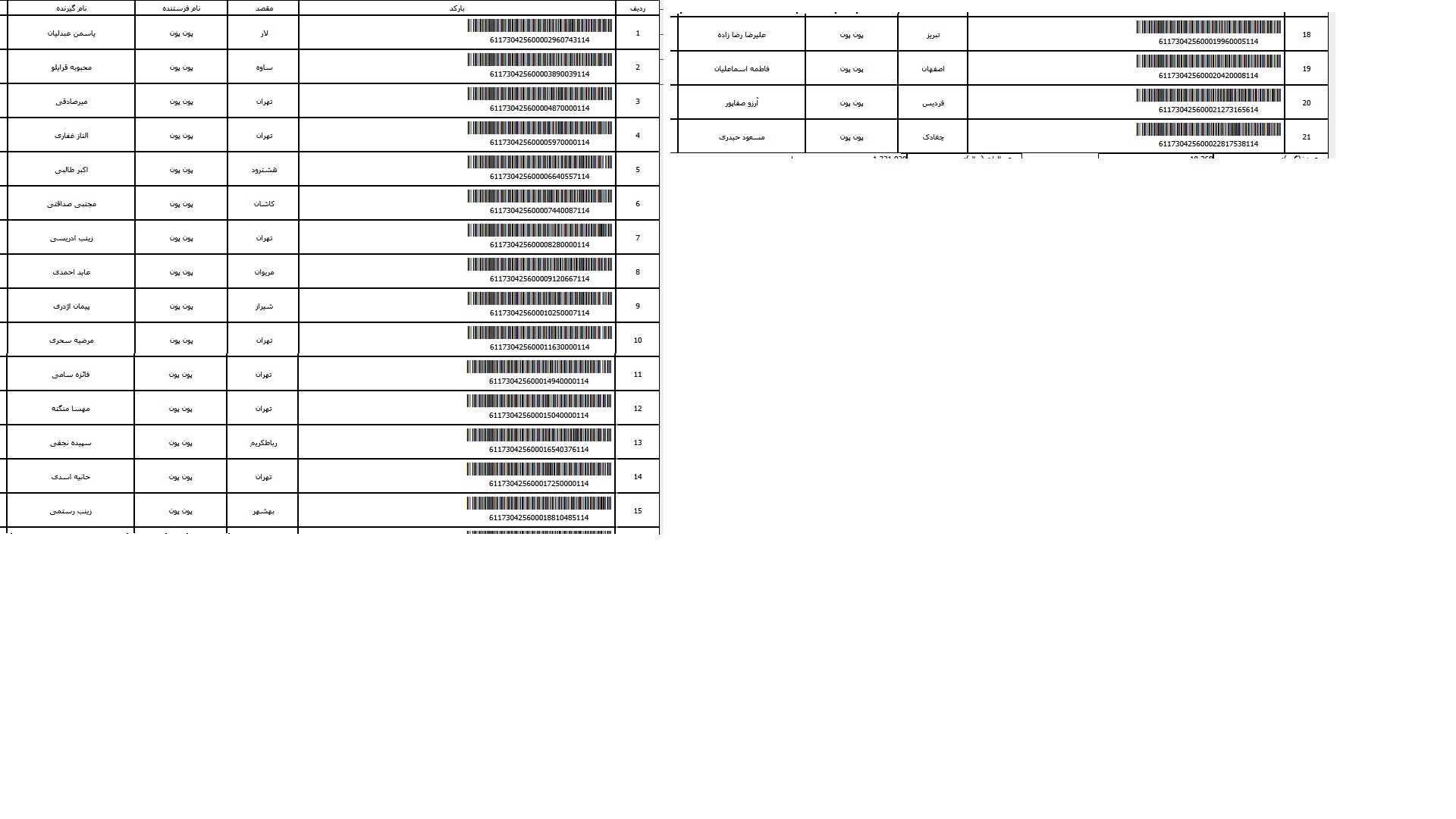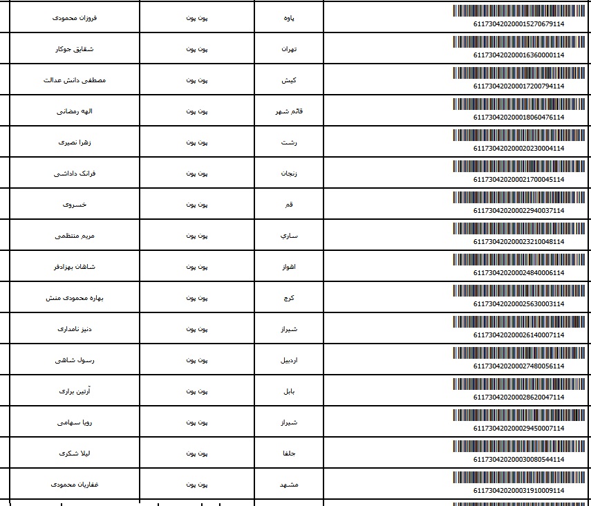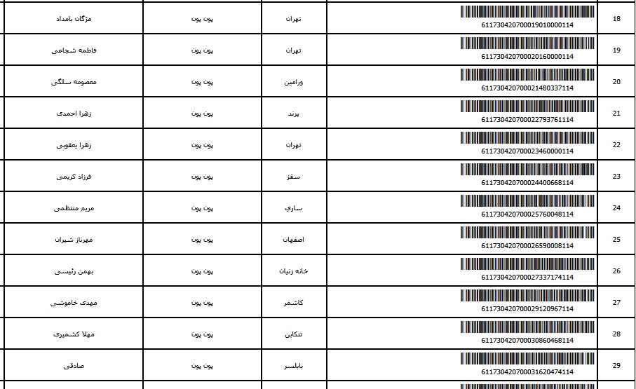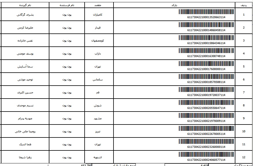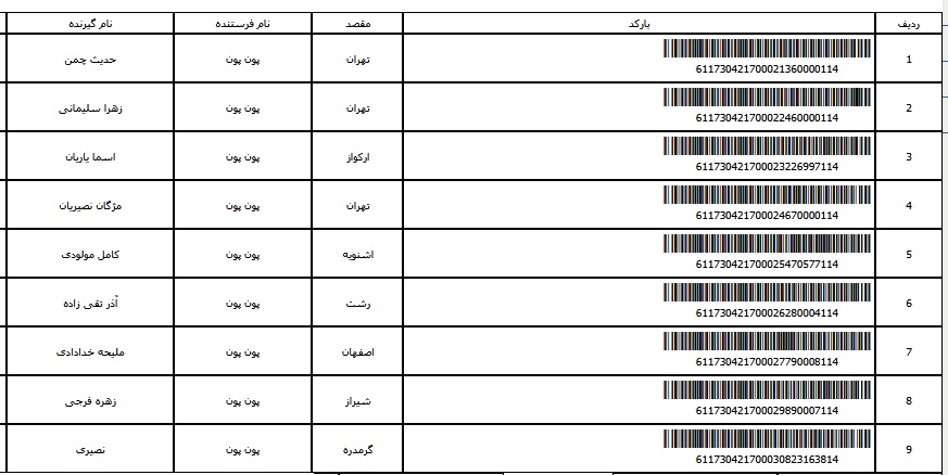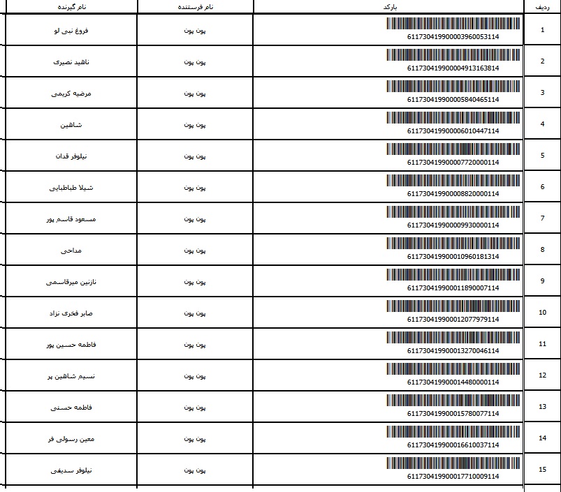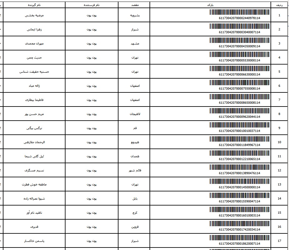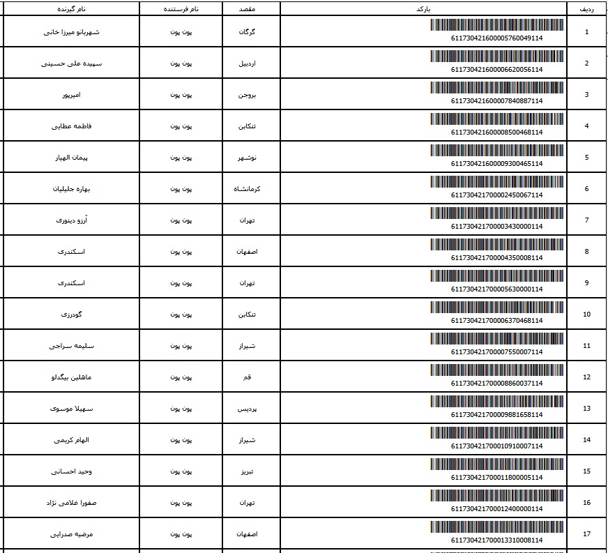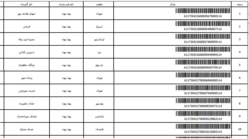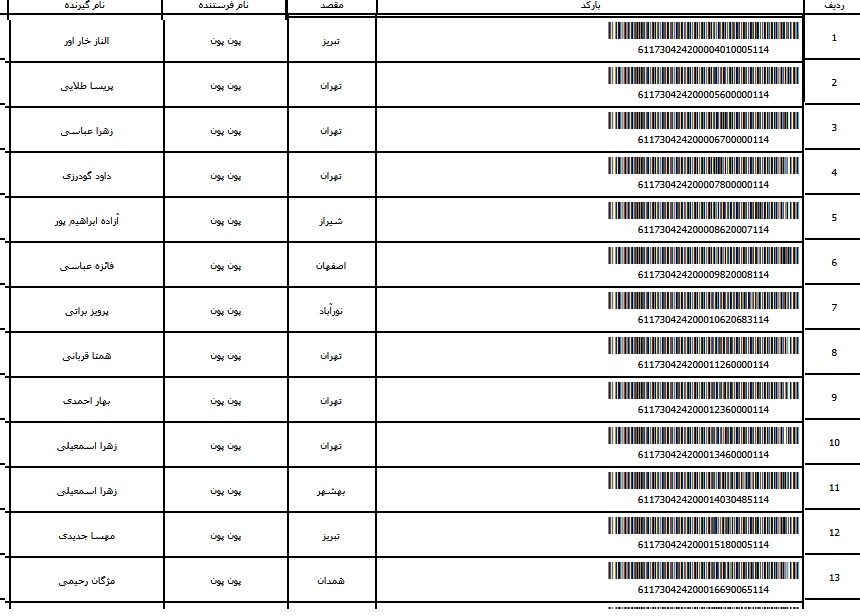 - شماره مرسوله یک آبان