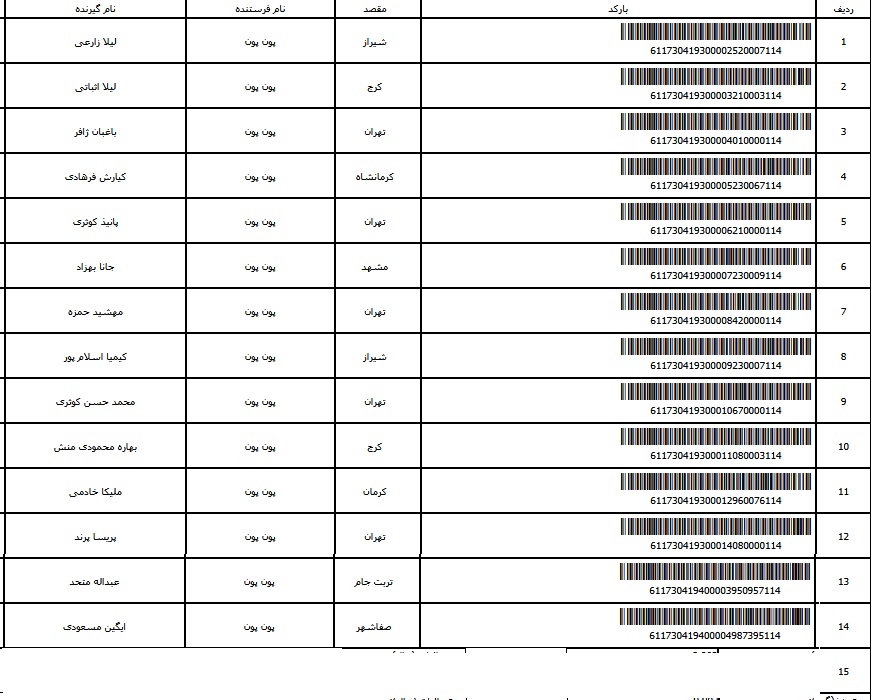 - شماره مرسوله پانزده آبان