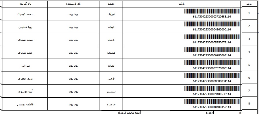 - شماره مرسوله پنج تیر
