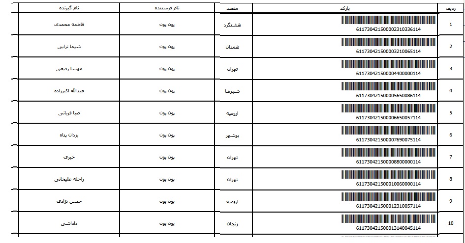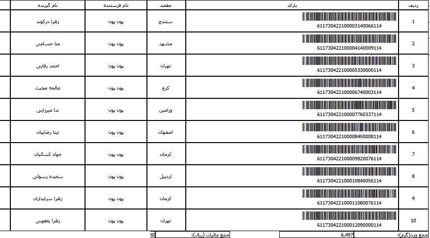 - شماره مرسوله ده تیر