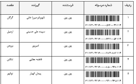 - شماره مرسوله پنج آبان