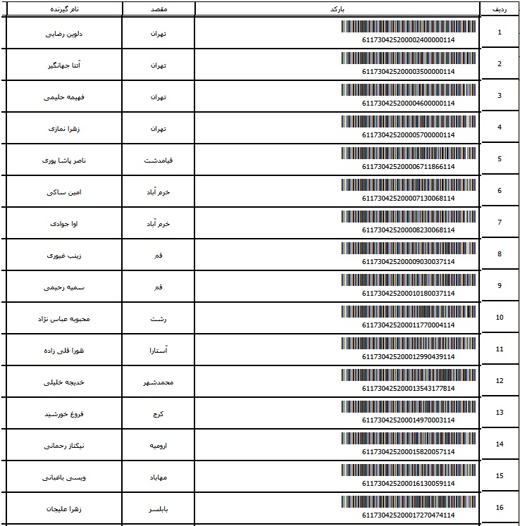 - شماره مرسوله شانزده مهر