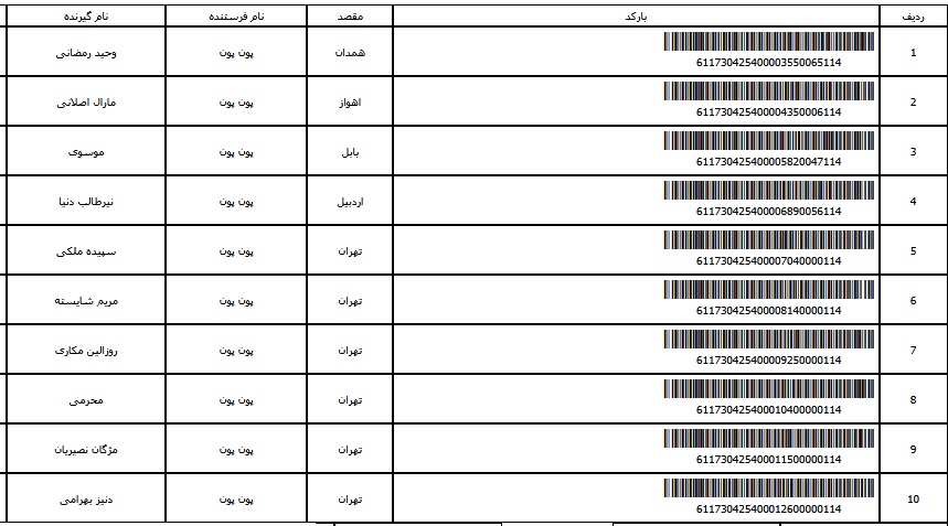 - شماره مرسوله ده آبان